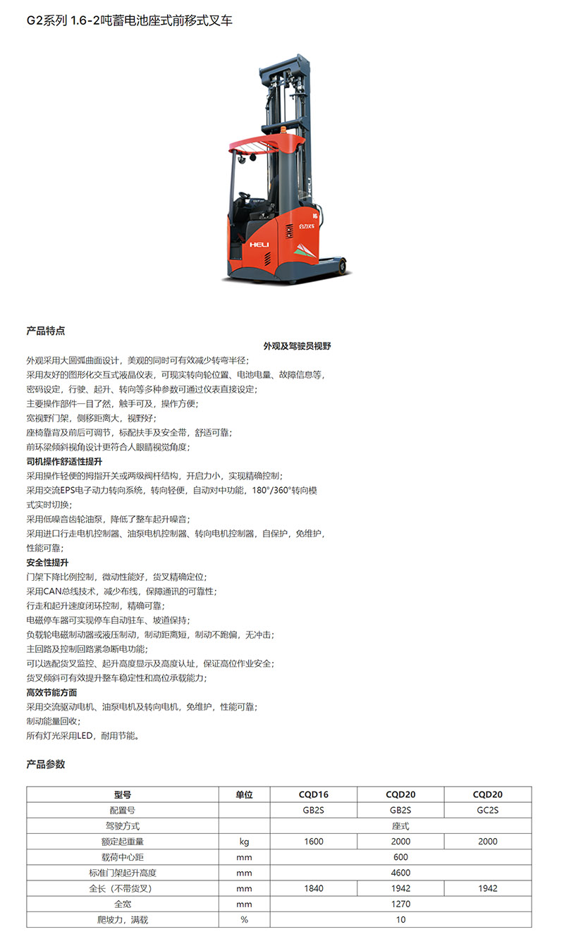 G2系列 1.6-2吨蓄电池座式前移式叉车